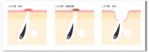 にきびには種類があり、症状(炎症の程度)によってお手入れ方法が大きく変わります✨